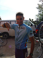 L'activitat própiament dita va començar dissabte al matí, ens vam aixecar per allà les 8, vam anar a fer un dejú corrent suau per camins de terra d'uns 40' per despertar el cos. Acte seguit i sense dutxar-nos va procedir a un esmorzar potent i sense complexes a base de: sucs, fruita, cereals, pa, pernil dolç i salat, café, melmelades, i múltiples barreges possibles. El menú (esportiu) del dia seguia amb una etapa de bicicleta de carretera d'uns 100km i 1500m de desnivell amb tres ports de muntanya i una crono per equips. Les coses no van començar massa bé ja que al cap de 30' de pedalar el joe va veure que la seva roda de darrere es frenava i no podia avançar bé. Vam parar, es va arreglar una mica el tema i va començar la batalla. Vam fer dos equips, equip 1 (joe, comas, albós, ferran ) equip 2 (Putxi, mingo, armand, jo) i cada equip va fer l a seva tàctica, l'objectiu era que el màxim de corredors de l'equip arribessin dalt del mortirolo abans que l'altre equip. El primer en començar les hostilitats va ser l'Armand, va atacar només començar les primeres rampes i el pilot no va reaccionar gaire i el va deixar der. Al cap d'una estona sortien els primers dubtes sobre que fer, pam! atac del mingo! Cal dir que el Mingo no va entendre ben bé que havia de fer i va neutralitzar l'atac de l'Armand (company d'equip) ell solet, al neutralitzar l'atac, l'Armand va tornar a ata car i al pilot es va moure el Joe, va fer fort atac i en una de les pendents més fortes del port va fer un brusc canvi de marxa de peu i va trencar l a cadena, després llençaria la bici amb les dos mans en un gest de desesperació i ràbia. Acte seguit el Ferran va treure el cap per les posicions de davant però darrere tenia dos llops amb molta gana (Putxi i jo) la tàctica era que jo marxés en solitari i així vaig fer, em vaig posar de peu sobre la bici i vaig agafar uns metres de distància sobre el Ferran i el Putxi que controlava la situació. Vaig arribar a dalt del petit port primer, i a 190 pulsacions, amb uns metres davant de Ferran i Putxi, els altres es van retrasar una m ica més. Un cop a dalt vam esperar el Joe que va pujar caminant amb la cadena trencada, vam decidir baixar al poble i buscar una botiga per intentar que l'arreglessin. La vam trobar la botiga, ens van deixar el tronxac... i mitja hora reparant la cadena, hi va haver gent que va agrair molt aquest descans, i van aprofitar per m enjar, beure i descansar, portàvem hora i mitja de bici.